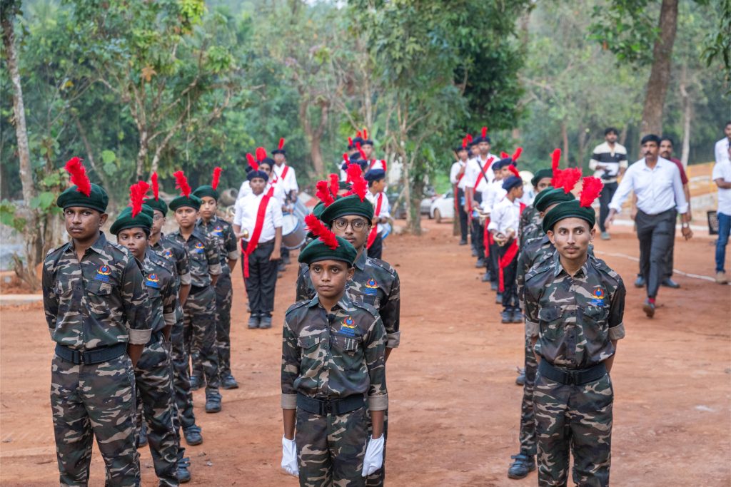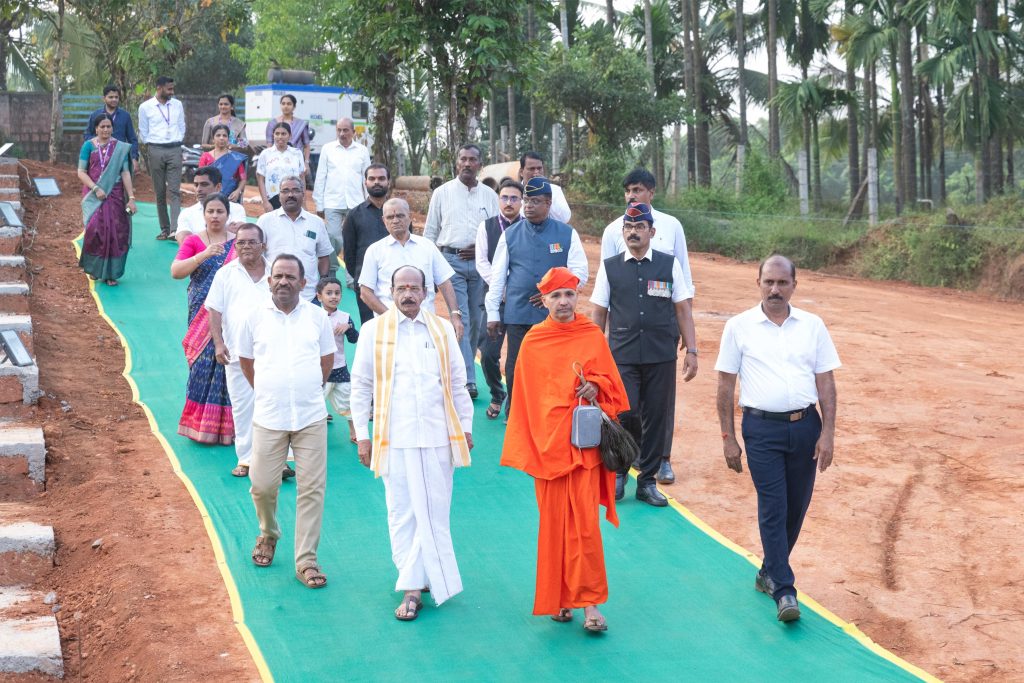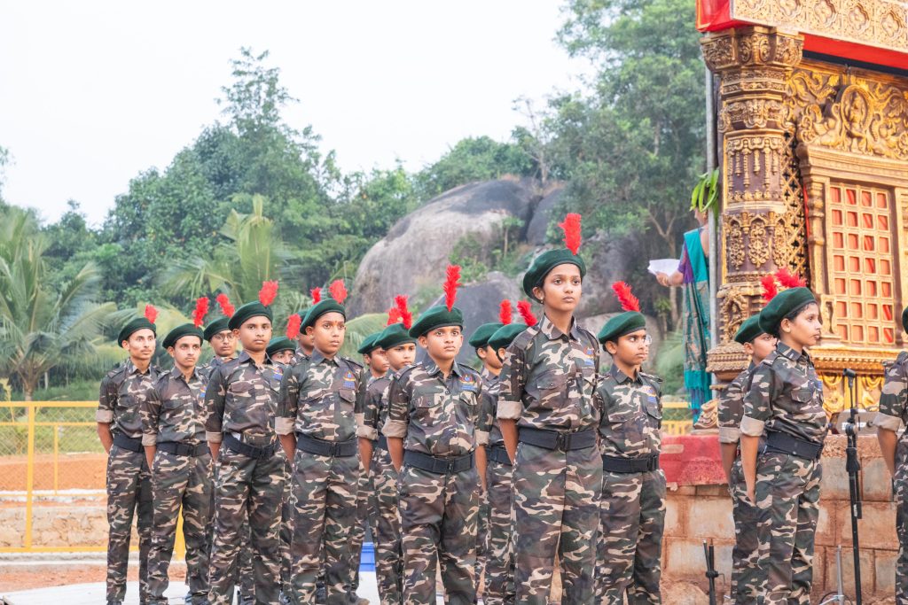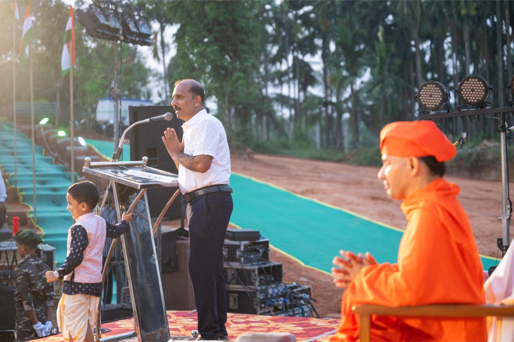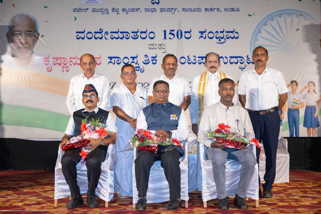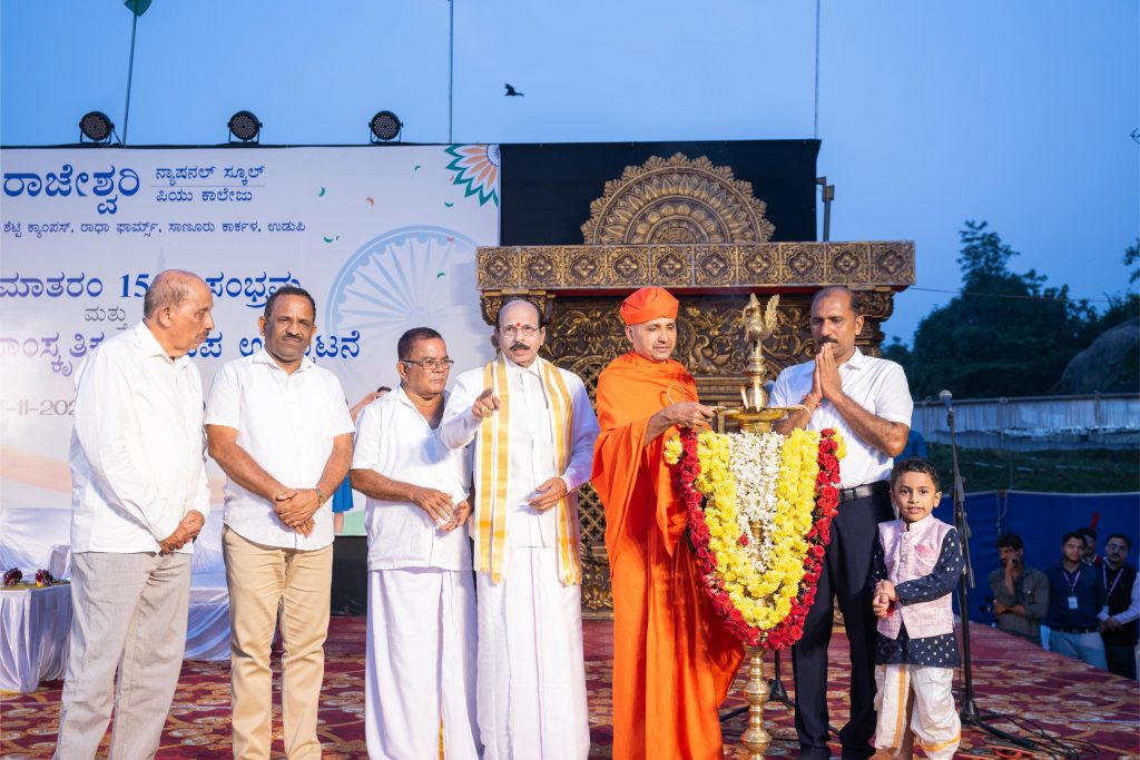 Rajeshwari National School and PU College proudly organized a grand program to commemorate the 150th anniversary of Vande Mataram, celebrating the spirit of patriotism and cultural heritage. The event also featured the inauguration of the Krishnanugraha Cultural Pavilion. The occasion was graced by Jagadguru Shree Svasthishri Charukeerthi Bhattaraka Pattacharya Panditacharya Varya Maha Swamiji of the Digambara Jaina Matha, Moodabidare.
